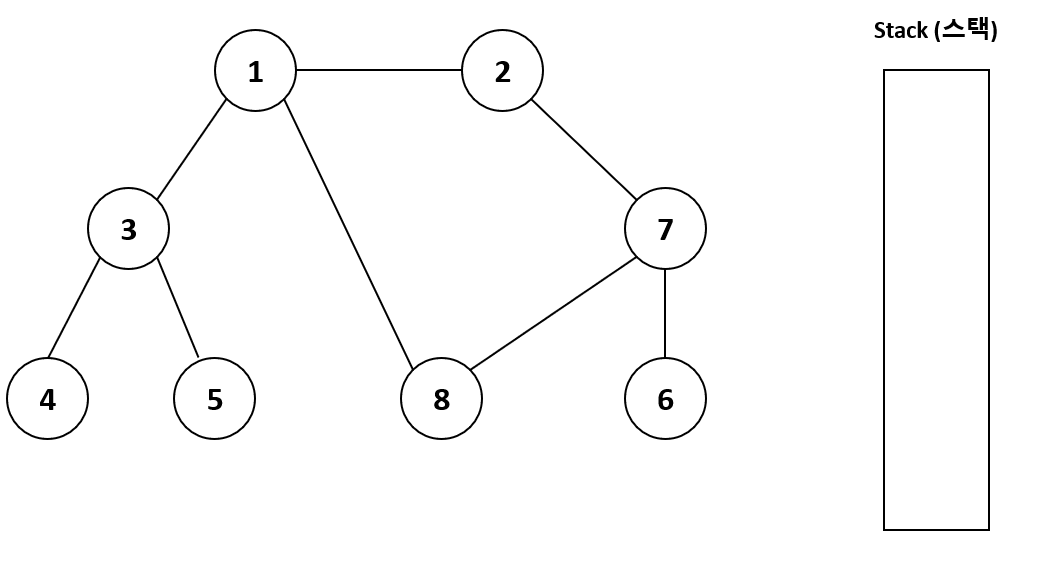 1. 탐색 시작 노드를 스택에 삽입하고, 방문 처리한다.