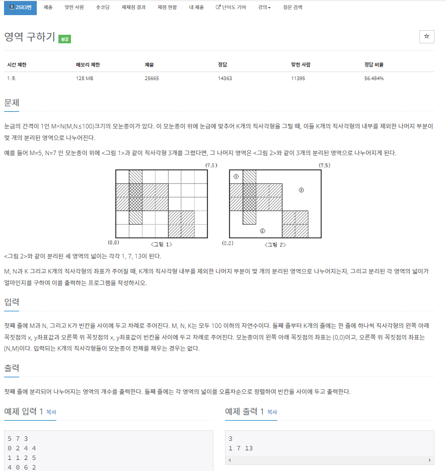 2583번: 영역 구하기