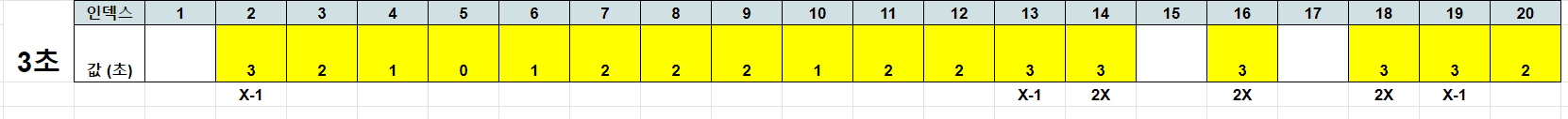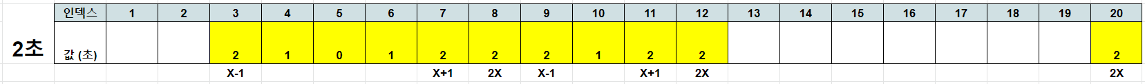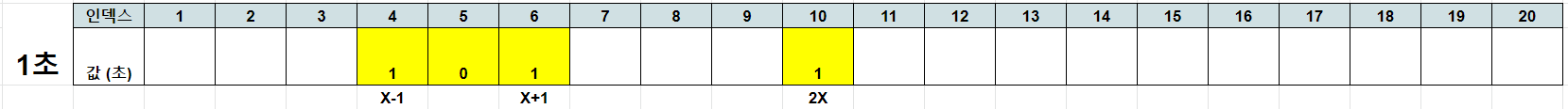 1초 때는 X-1, X+1, 그리고 2X로 이동할 수 있어서 4, 6, 그리고 10으로 이동할 수 있다. 표로 표현하면 다음과 같다.