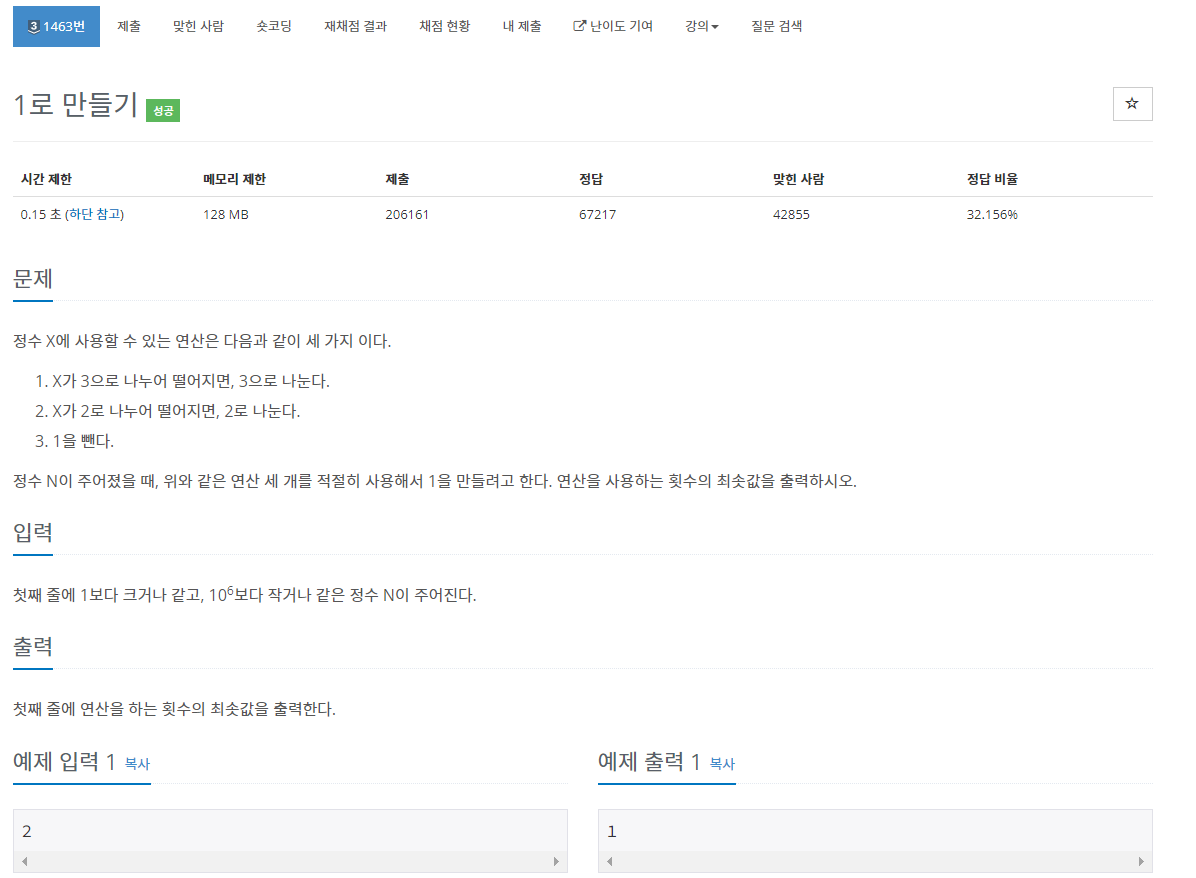https://www.acmicpc.net/problem/1463