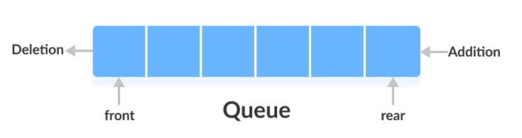 큐는 FIFO 선입선출(First In First Out)의 구조를 가진다. 즉, 큐에서는 먼저 들어온 데이터가 가장 먼저 나가는 구조이다. 한 예는 은행에 번호표가 있다. 은행에서 번호표를 먼저 뽑은 사람이 서비스를 먼저 받는다. 이러한 은행의 번호표의 체계가 큐(Queue)이다. 큐는 추가로 그래프의 넓이 우선 탐색(BFS)에서 사용된다.
