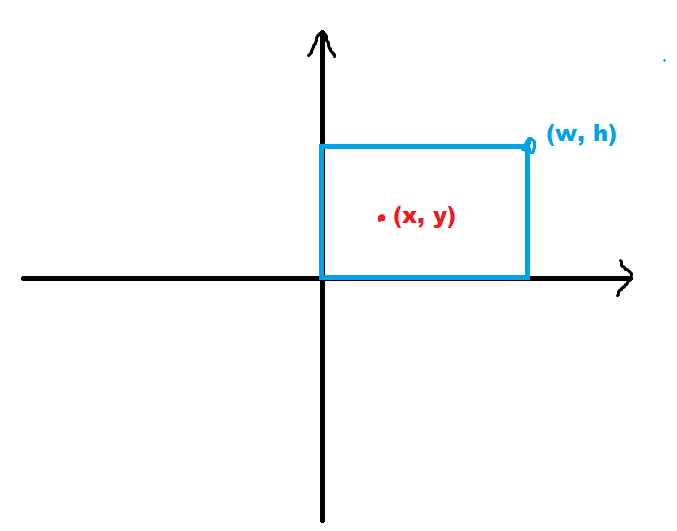 파란색의 직사각형이 있고 그 직사각형 안에 점 (x, y)가 있다. 이때 경계선과 가장 가까운 거리를 구하면 된다. 즉, 이 점에서 직각으로 이동했을 때 최소의 거리를 구하기만 하면 된다는 것이다. 그림으로 표현하면 다음과 같다.
