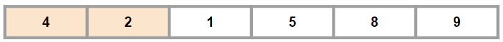 2가 4보다 더 작으니 더 작은 숫자인 2를 앞으로 보낸다.
