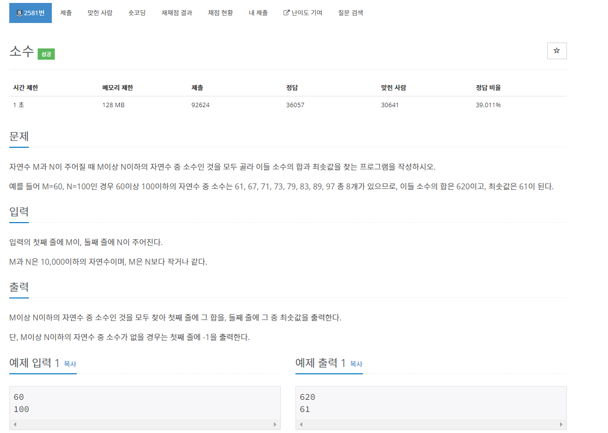 https://www.acmicpc.net/problem/2581