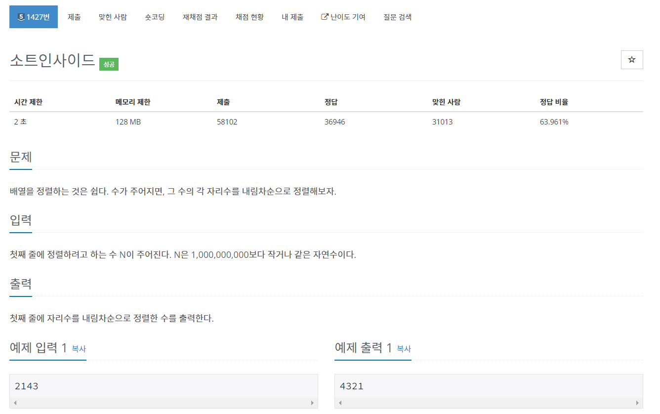 https://www.acmicpc.net/problem/1427