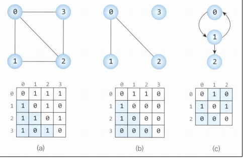 무방향 그래프는 (a), (b)에서 볼 수 있듯이 인접 행렬이 대칭적 구조를 가진다.