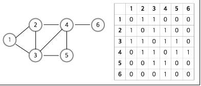 인접 행렬에서 행과 열은 정점을 의미하며, 각각의 원소들은 정점 간의 간선을 나타낸다.