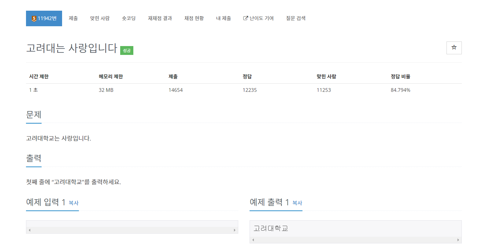 11942번: 고려대는 사랑입니다