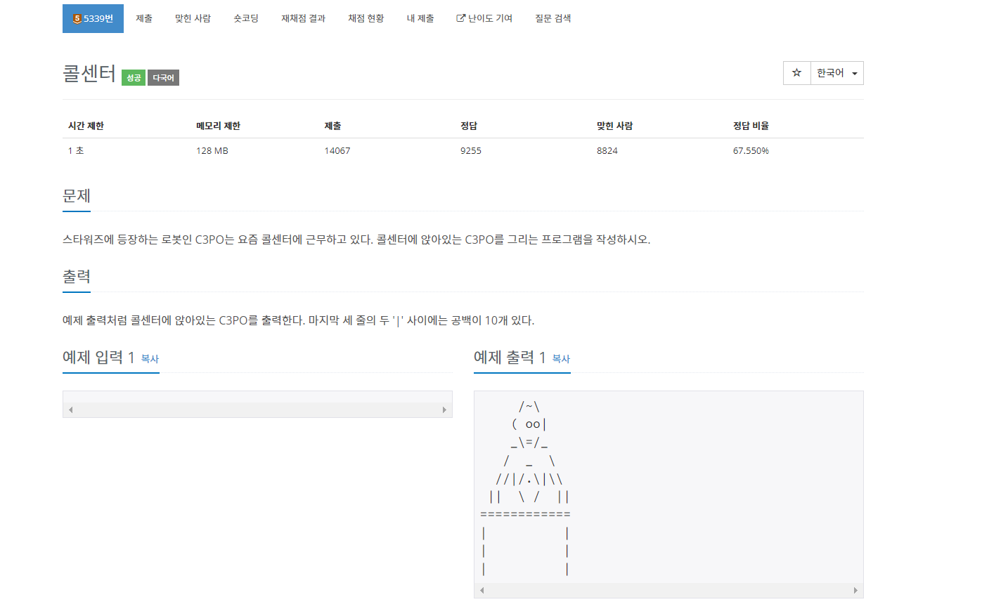 백준 5339번 콜센터는 브론즈 5 난이도의 구현 문제이다. 이 문제는 PLU High School Programming Contest 2013에 Novice 3번으로 나왔다.