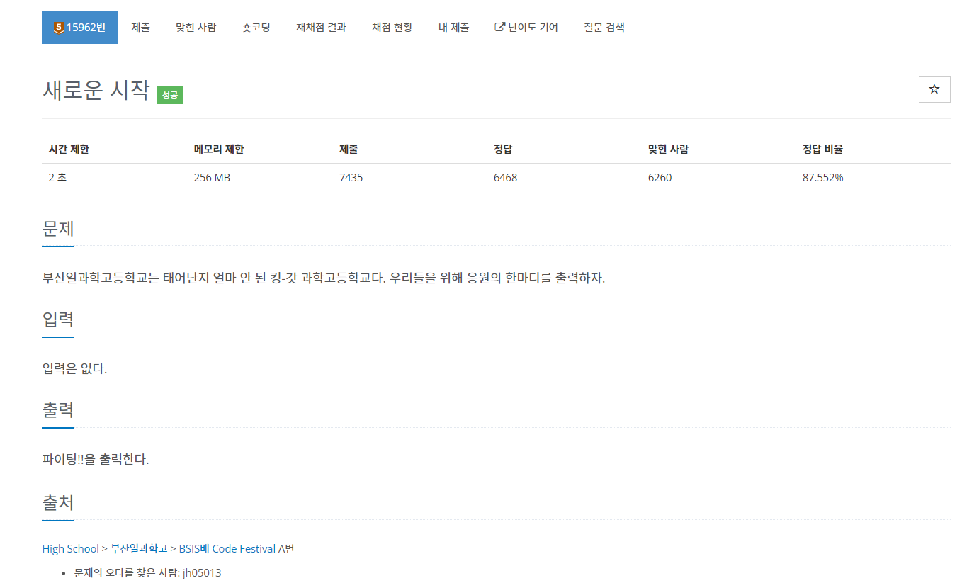 백준 15962번 새로운 시작은 브론즈 5 난이도의 구현 문제이다.