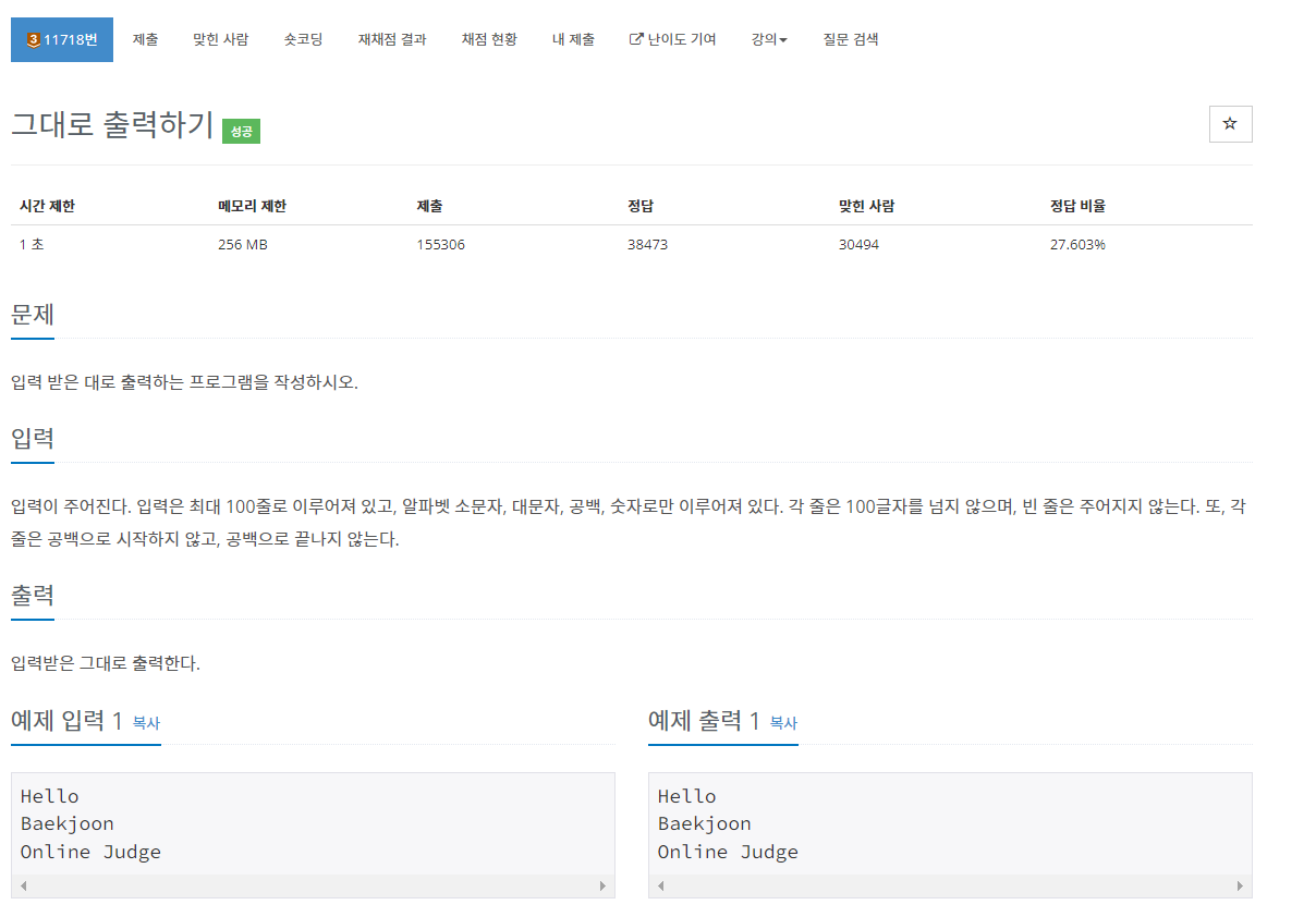 백준 11718번 그대로 출력하기는 되게 간단한 문제이다. 입력받은 것을 그대로 출력해주면 된다.