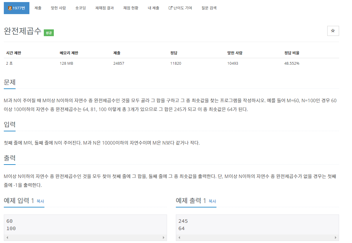 https://www.acmicpc.net/problem/1977