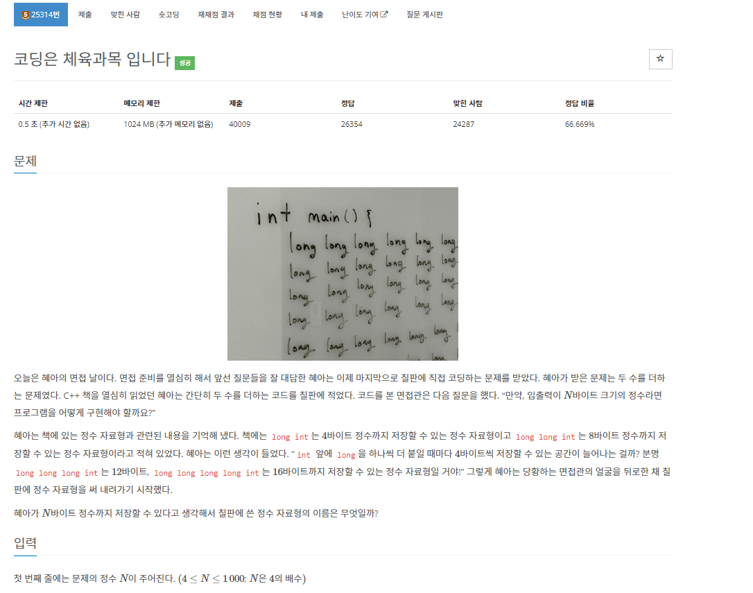 백준 25314번 코딩은 체육과목 입니다는 브론즈 5 난이도의 문제이다.