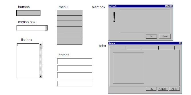 - Different sized stickies represent icons, menus, windows, etc