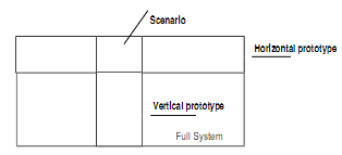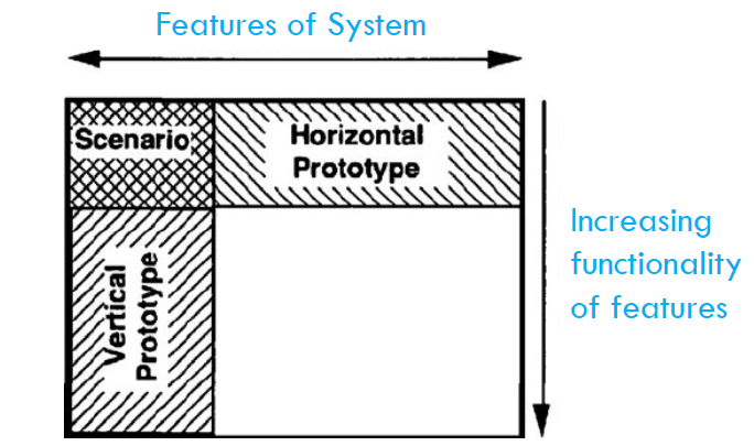 Vertical prototype - how are the features going to be realized (what's the technology going to be used) 여기서 디테일이 더 들어감. help increase different functionalities of the features