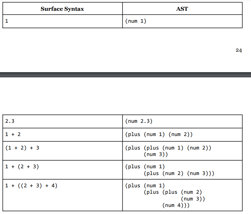 Create abstract syntax tree from programs given a grammar (EXAM QUESTION)