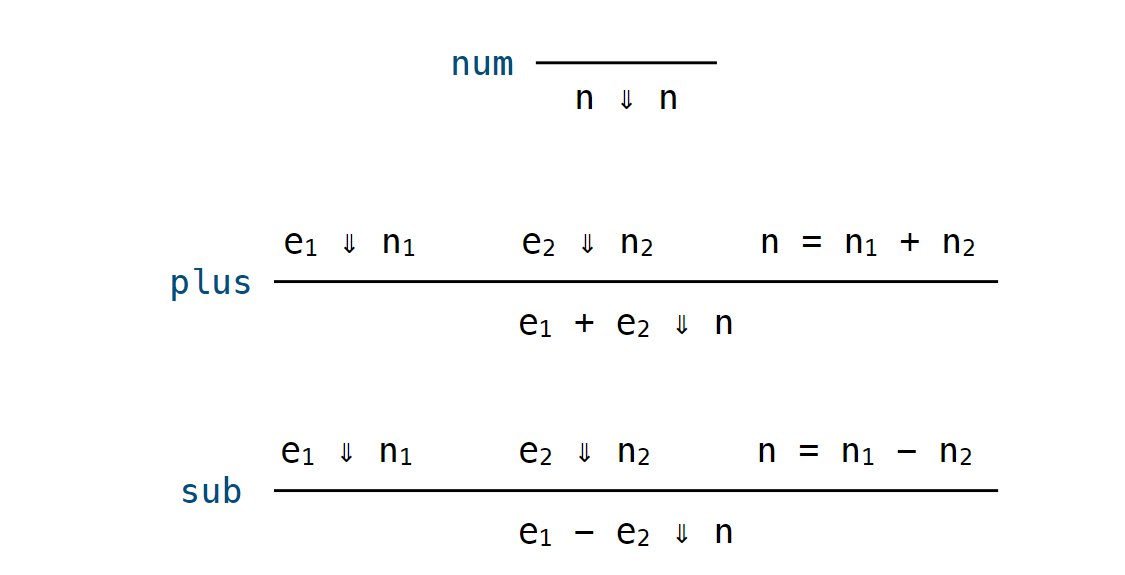 - Apply big-step semantics rules to reduce expressions to values