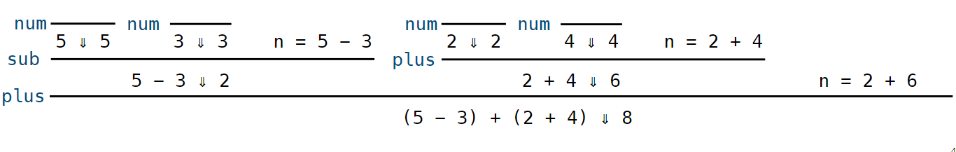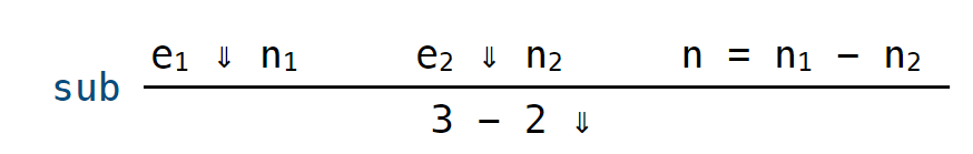 e1과 e2에 각각 3과 2를 대입. 그리고 위에 있는 num rule를 사용해서 n1, n2의 값에 배정.