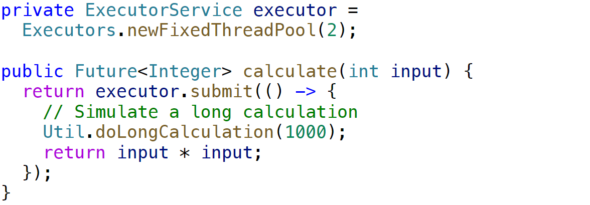 private static ExecutorService executor = Executors.newFixedThreadPool(2);