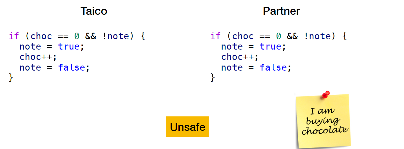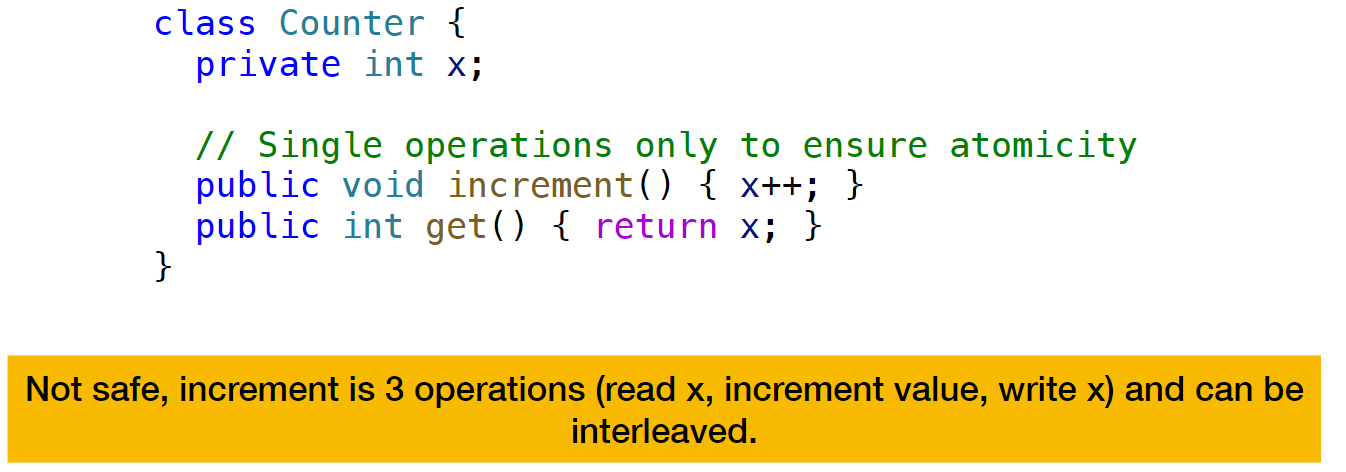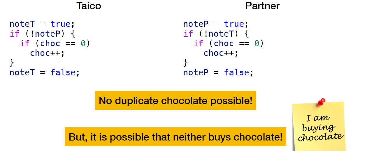 So we need to care about atomicity of actions (so the actions happen before and after, not during).