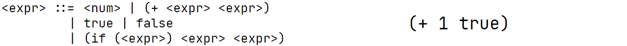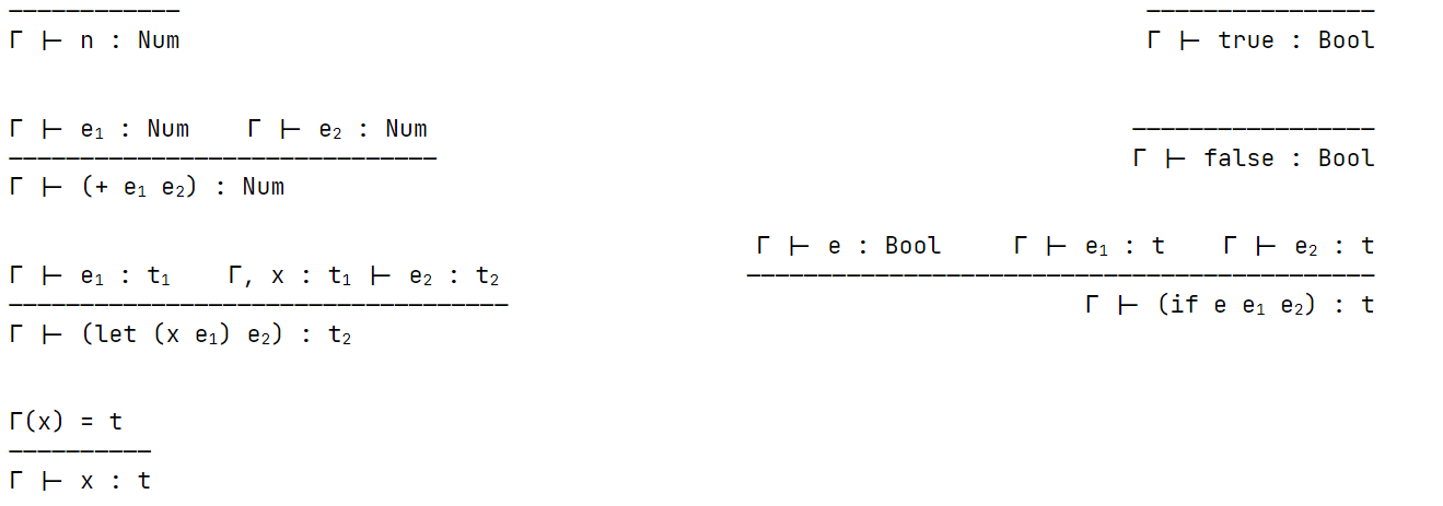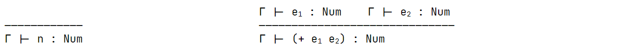 2. Plus expressions: (+ e1 e2) is well typed and has the type Number if e1 has type number and e2 has type number