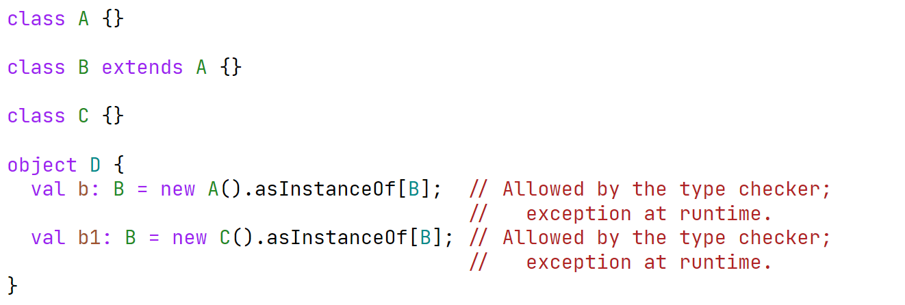 → In Scala, we can cast any value of any type to anything else (C는 B와 아무 관련이 없어도 Cast는 가능)