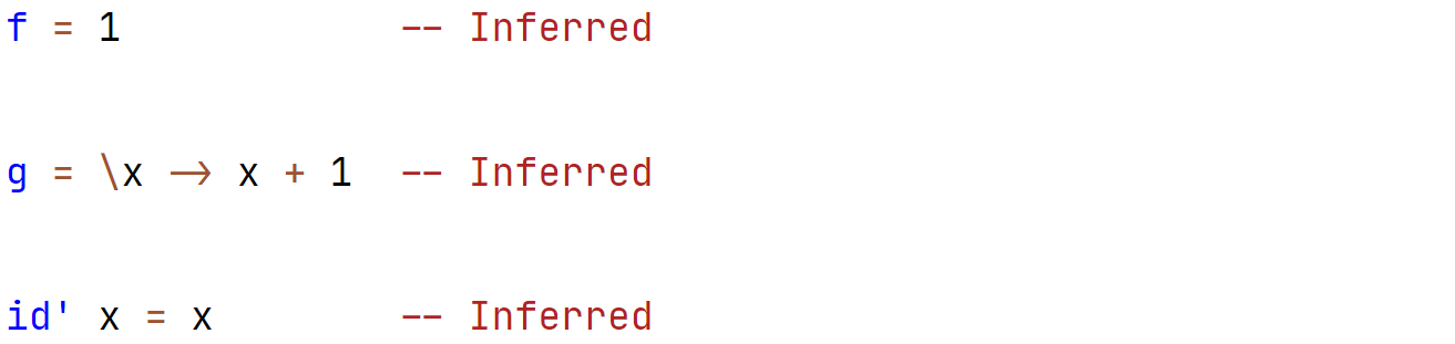 Type inference lets us infer the type of programs, without having to provide type hints up-front