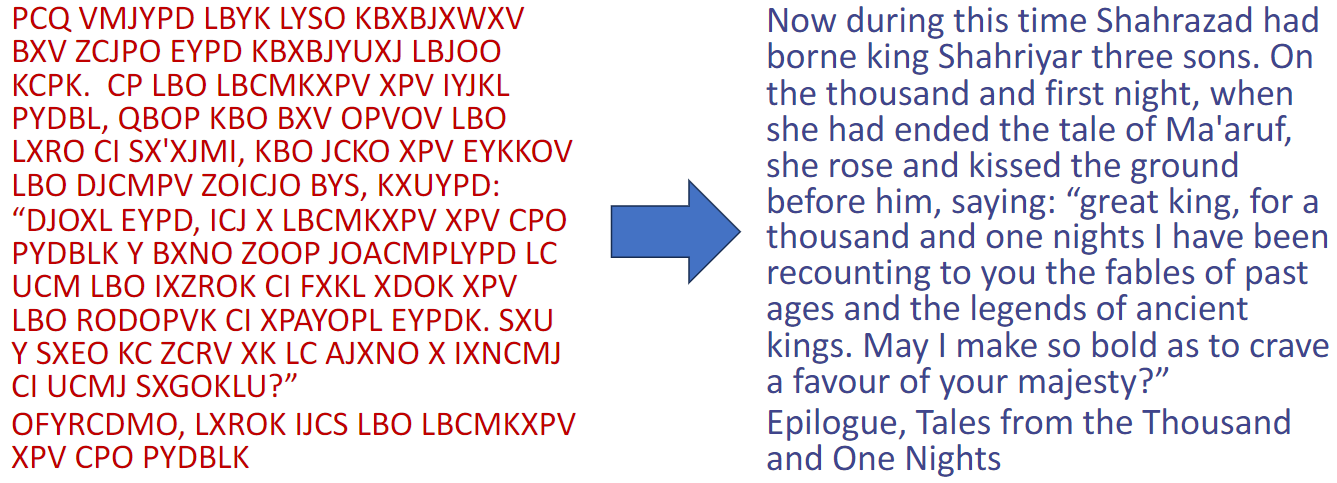 이 방식을 반복하다 보면 다음과 같은 해독된 메시지, 즉 decrypted message를 구할 수 있다.
