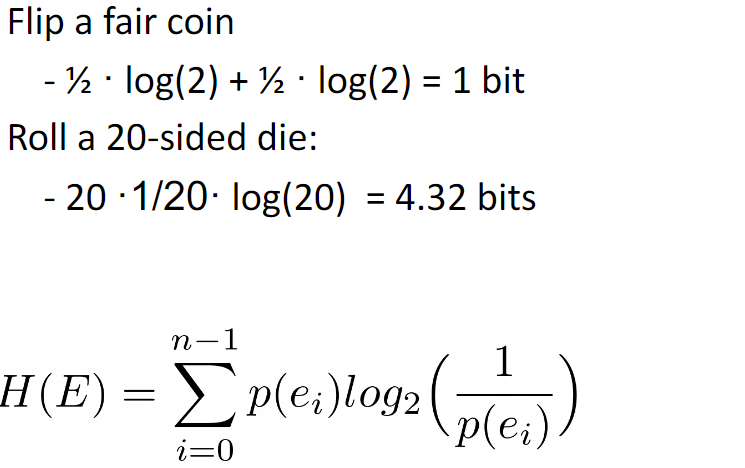 Entropy: Formal measure of uncertainty in the outcome of a process