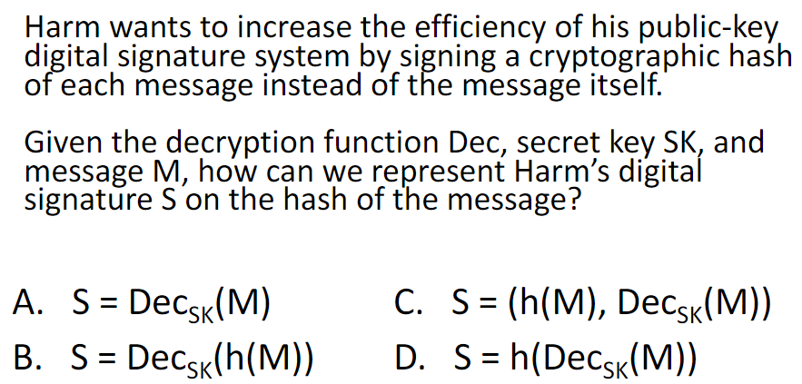 답: B (decrypt the hashed message)