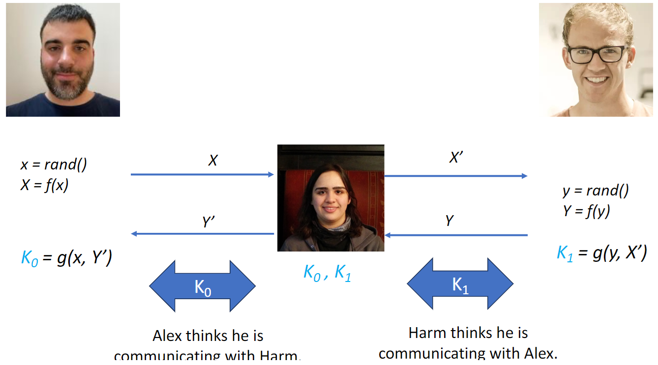 Vulnerable to man-in-the middle attack (can capture X and not let Harm see it)