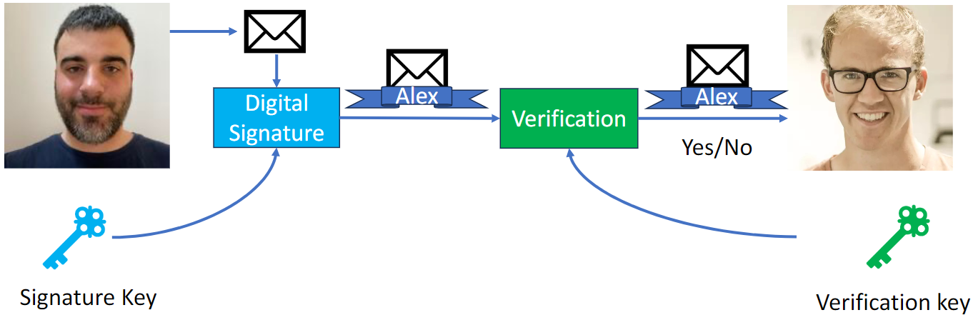 Digital signature: Alex wants to send a message and proves that the message came from him