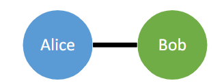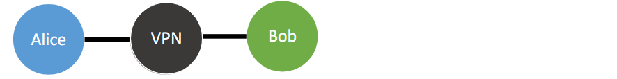 Alice connects to Bob through her ISP (Internet Service Provider)