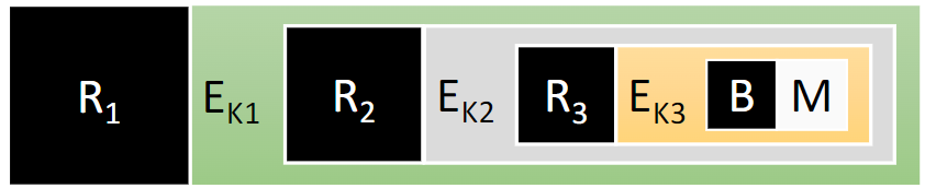 R1이 받을 때는 E_k1 상태로 되어 있음. 이걸 해독해야 다음에 어떤 node에 보낼지 알게됨.