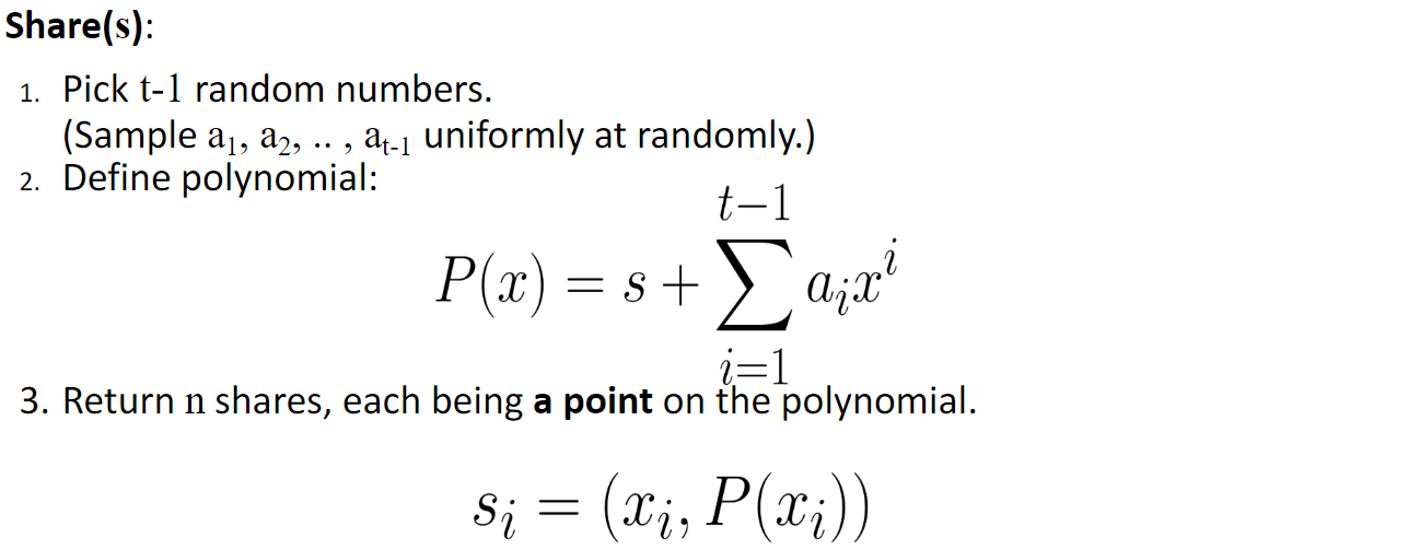 - Security can be adjusted by updating the polynomial (and re-issuing shares)