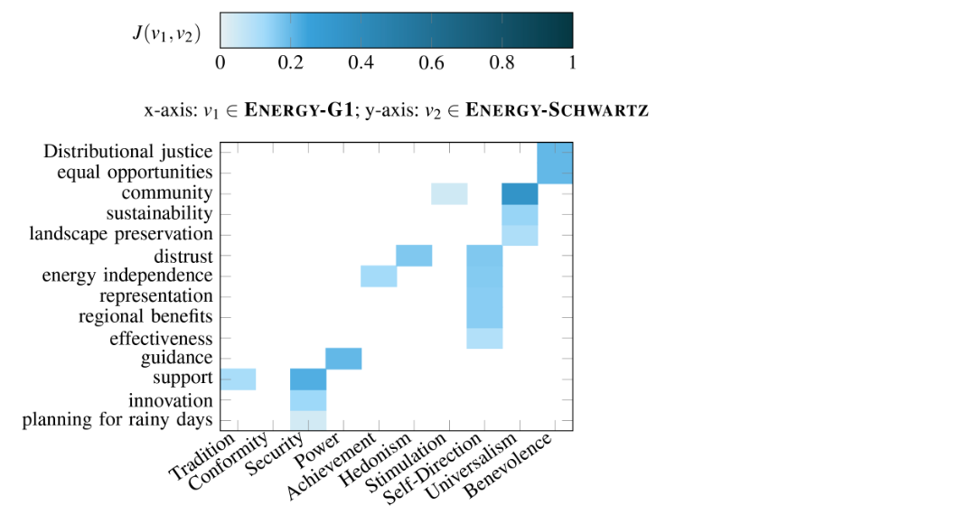 We compare the values we elicited (values identifeid by the annotators) with the Schwarz (x axis).