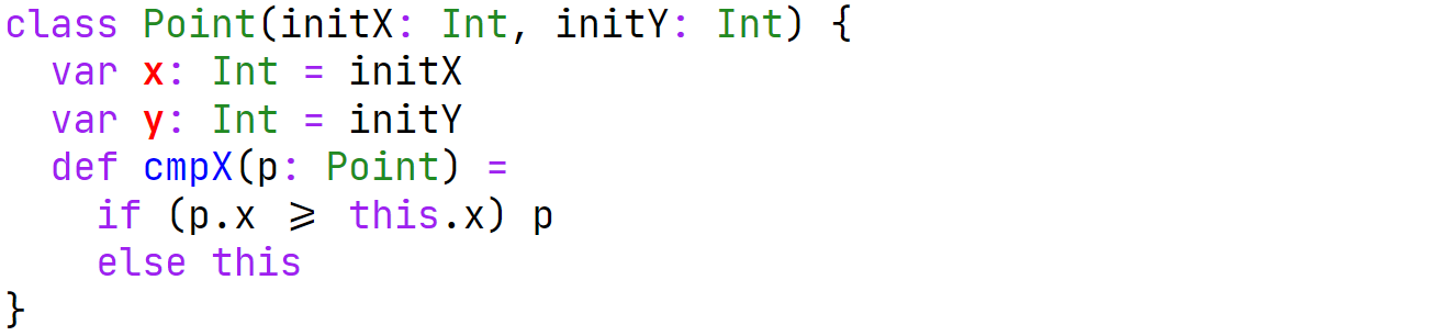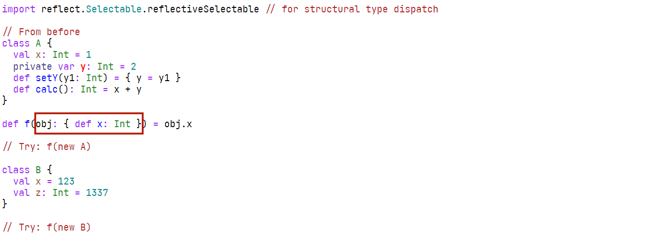 → As long as this scope contains method called x that returns Int, it works (as long as this has something named x that returns Int)