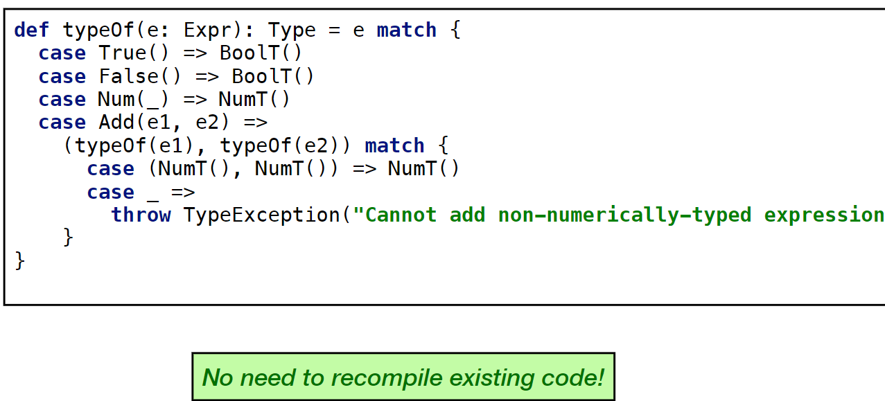 The goal is to define a datatype by cases, where one can add new cases to the datatype and new functions over the datatype, without recompiling existing code, and while retaining static type safety (e.g. no casts)