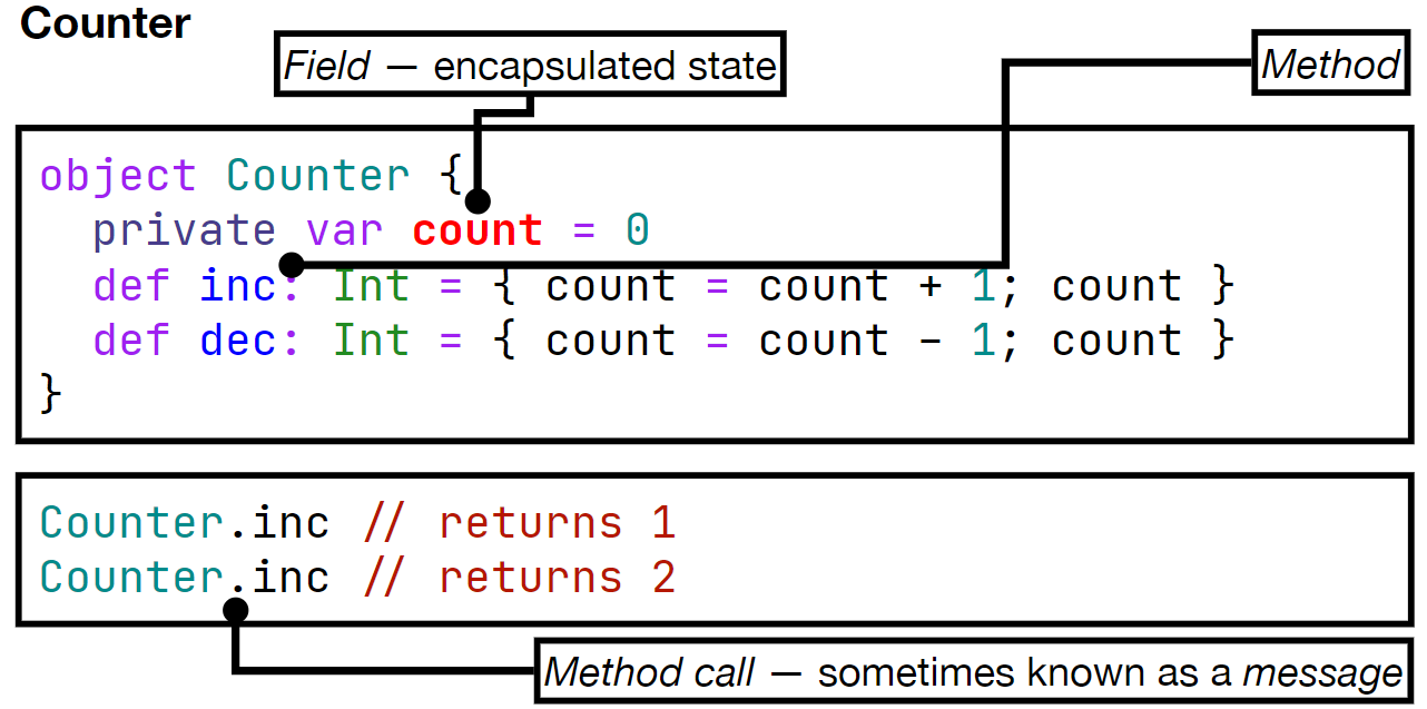 Object-oriented programming lets us define stateful abstractions that encapsulate state