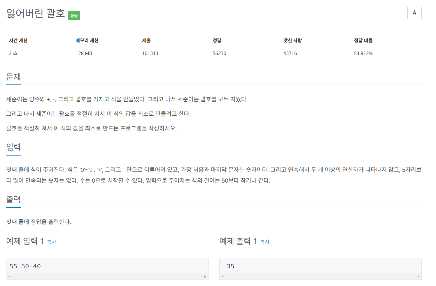 [백준] 1541번 : 잃어버린 괄호 – JAVA [자바]