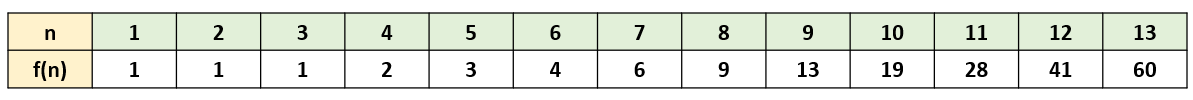 피보나치 비스무리한 수열은 f(n) = f(n-1) + f(n-3)인 수열이다. f(1) = f(2) = f(3) = 1이며 피보나치 비스무리한 수열을 나열하면 다음과 같다. 1, 1, 1, 2, 3, 4, 6, 9, 13, 19, ... 자연수 n을 입력받아 n번째 피보
