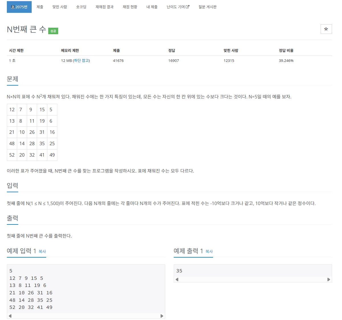https://www.acmicpc.net/problem/2075