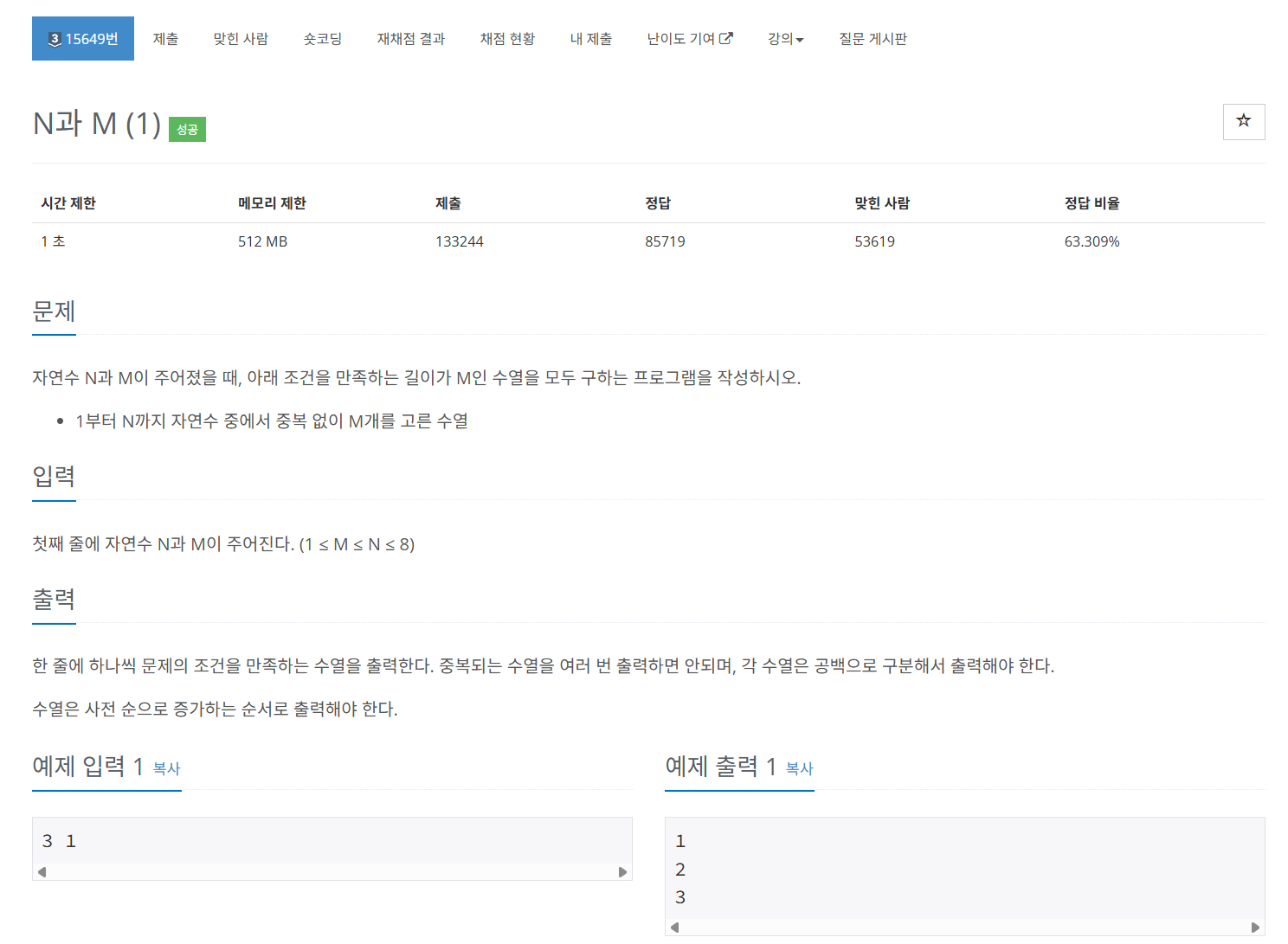 이 문제는 백트래킹(Backtracking)을 활용하여 중복 없이 M개의 숫자를 선택하는 순열(Permutation) 문제이다. 다음과 같은 방식으로 해결할 수 있다.