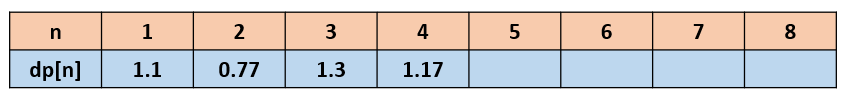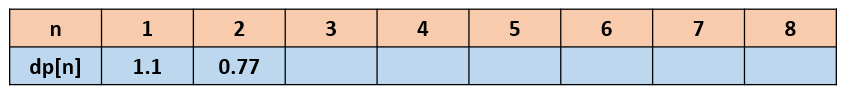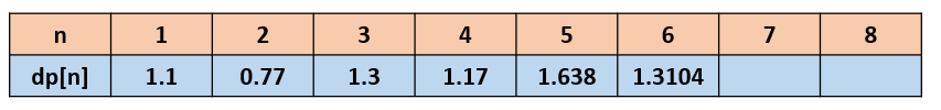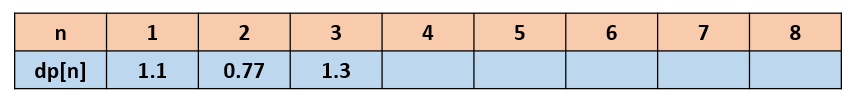 dp [3]도 마찬가지로 한다. 1.3 > 0.77 * 1.3 = 1.001 이므로 1.3을 dp [3]에 저장한다.