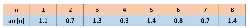 dp [8] = Math.max(dp [7]*arr [8], arr [8])인데 1.4 > 0.9173 * 1.4 = 1.2842 이므로 1.4를 dp [8]에 저장한다.