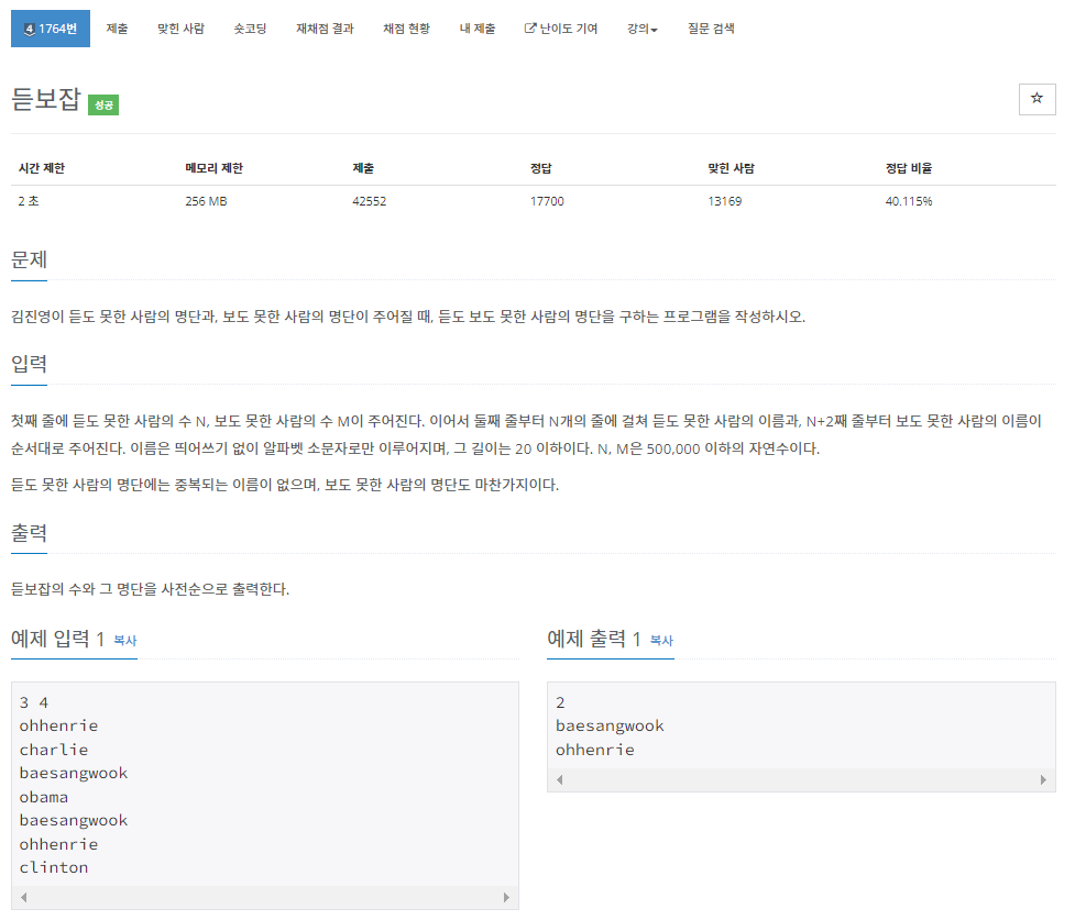 https://www.acmicpc.net/problem/1764