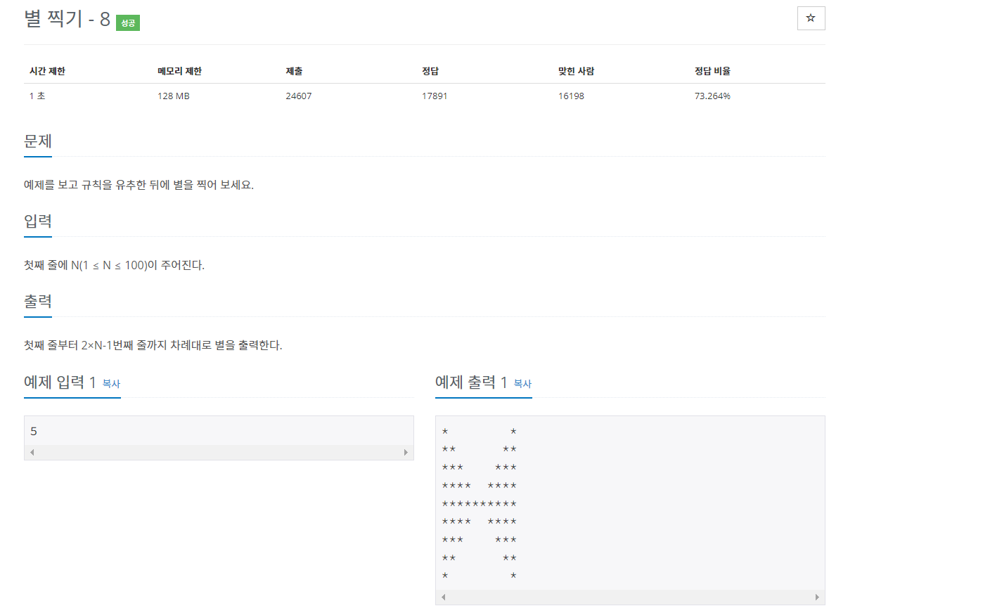 이 별 찍기 문제도 마찬가지로 크게 어려운 거는 없었다.