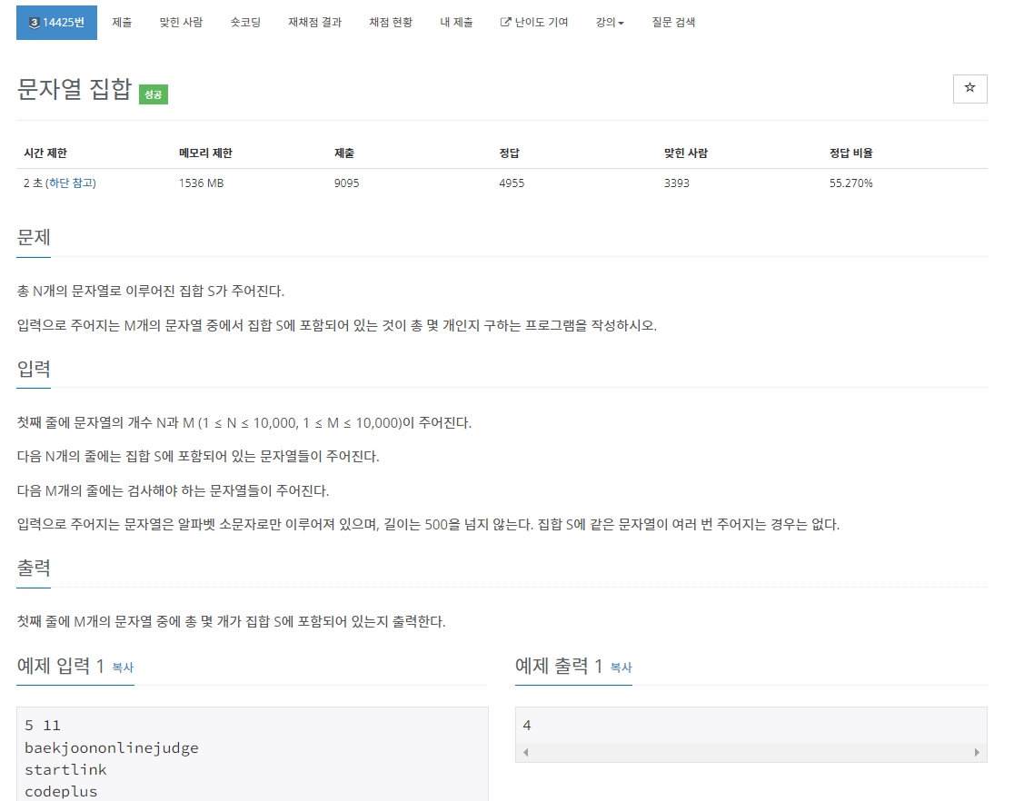백준 14425번 문자열 집합은 실버 3 난이도의 문자열 및 맵 문제이다. 이 문제에서는 n개의 문자열이 주어지고 그다음에 주어지는 m개의 문자열 중에 몇 개가 n개의 문자열과 겹치는지를 출력만 해주면 되는 문제이다. 이 문제는 HashMap을 이용해서 풀겠다. HashMap을 잘 모르면 밑에 있는 링크를 참고하면 되겠다.