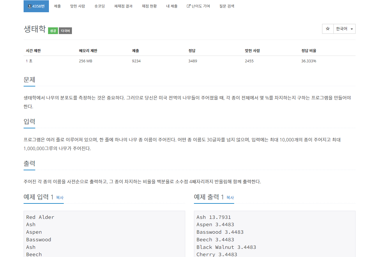 4358번: 생태학